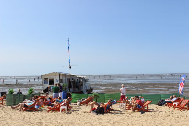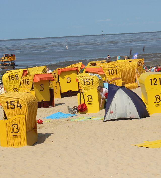 In der Sommersaison von April bis Oktober kann man mit der Jan-Cux-Strandbahn entlang des Wattenmeeres und des Weltschifffahrtweges problemlos größere Strecken zurücklegen.