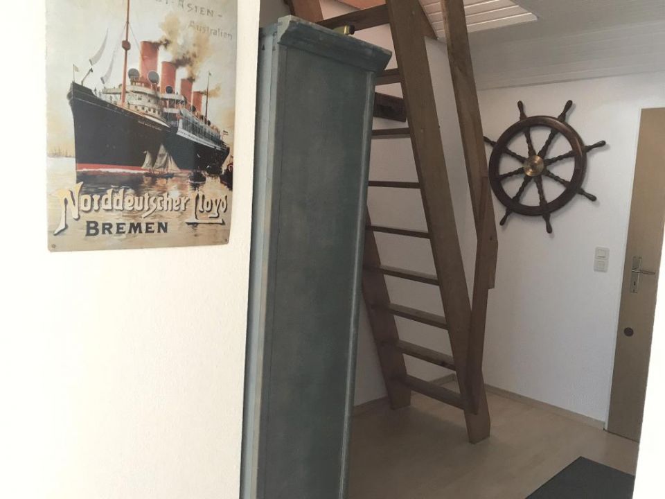 Die Ferienwohnung (Wohnung Nr. 9) befindet sich im zweiten Obergeschoss (Dachgeschoss) der kleinen Ferienwohnanlage "Am AHOI-Bad" in der verkehrsberuhigten Straße Voßhörn.